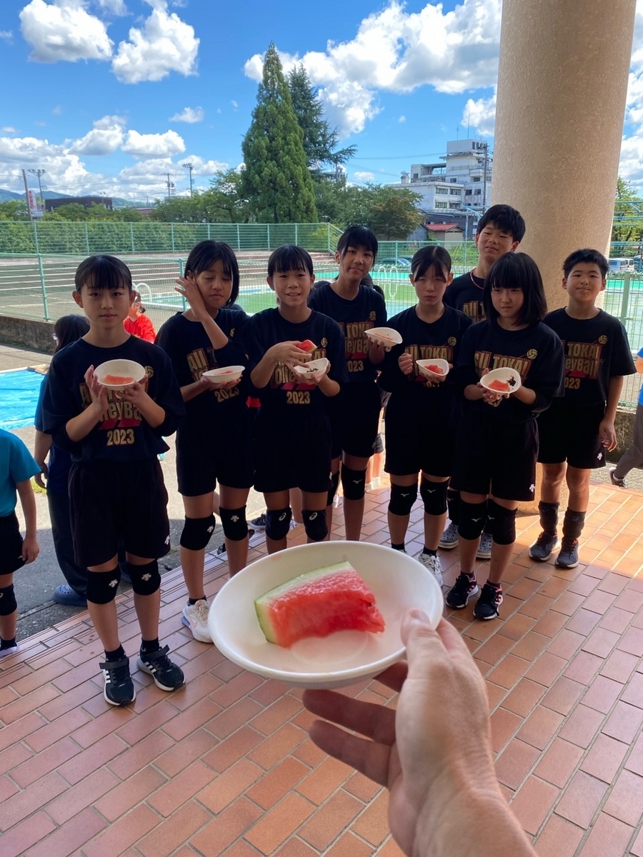 お昼休みには、各会場で「スイカ割り」などのイベントを行っていただき、バレーボール以外のことも楽しみ、交流することができました。